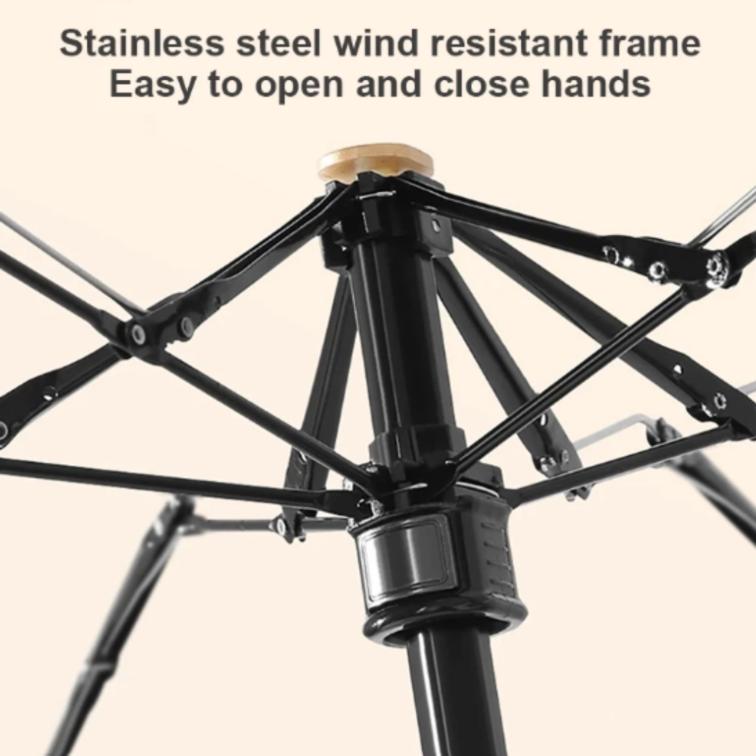 ⦿ 高品質のグラスファイバーと高品質のステンレス鋼で作られた独自のフレームワークシステムにより、コンパクト傘が壊れたり錆びたりする煩わしさに直面することはありません。